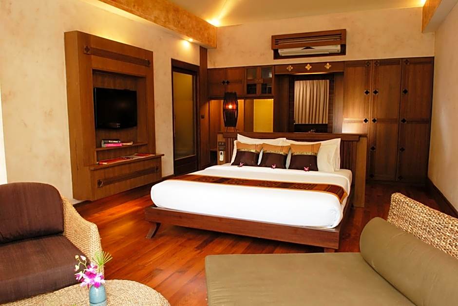 Pool Villa is 753 square feet and includes a queen-size bed 150-154 width.